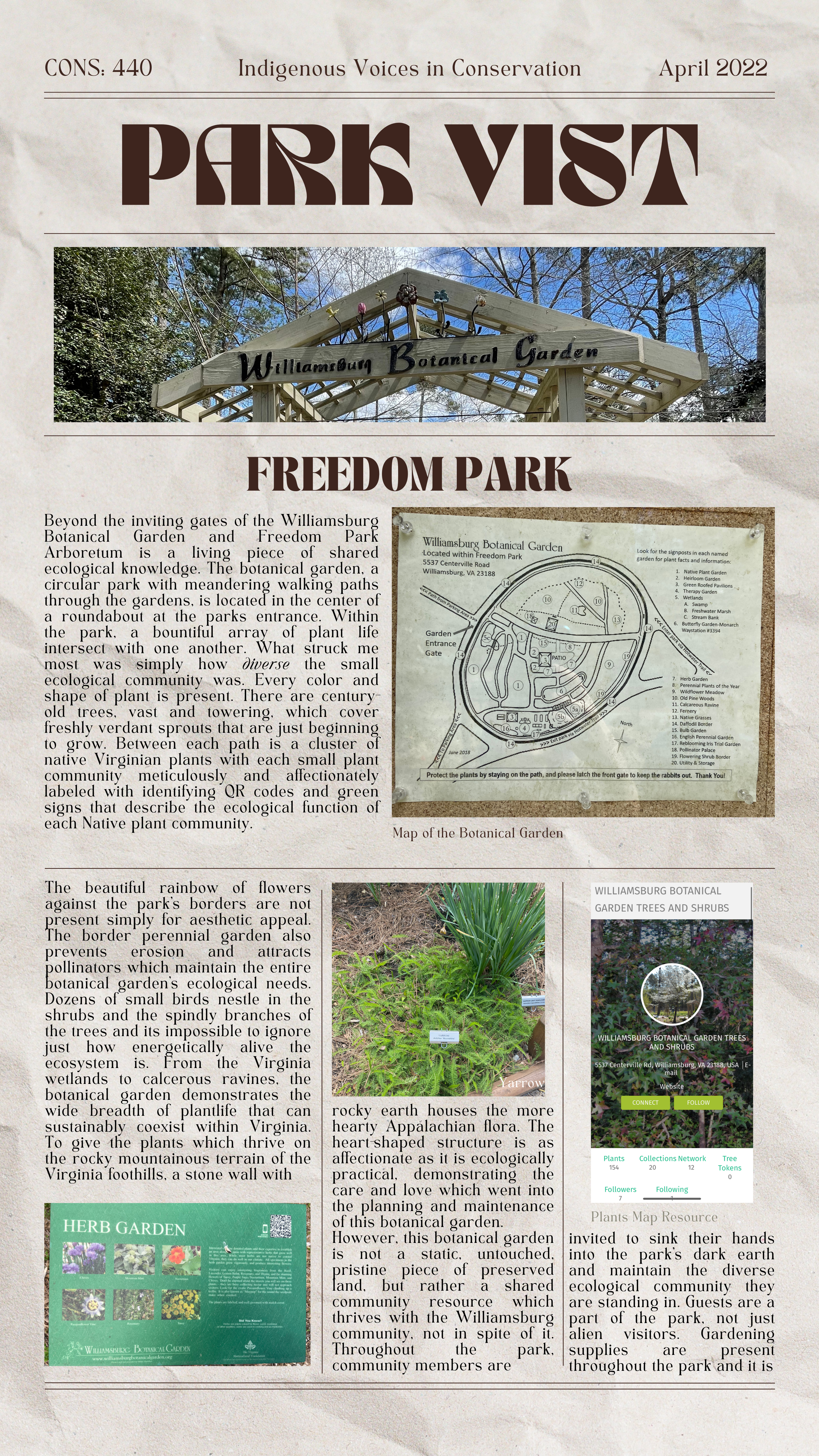Freedom Park & The Williamsburg Botanical Garden By Marley, Laila, Evelyn, Isabel Share this: Click to share on X (Opens in new window) X Click to share on Facebook (Opens in new window) Facebook Like Loading... Related One thought on “Freedom Park & The Williamsburg Botanical Garden” Add yours Pingback: Parks in Virginia – Explorations – Reparation After Science, Nature, and Settler Colonialism Leave a comment Cancel reply Δ