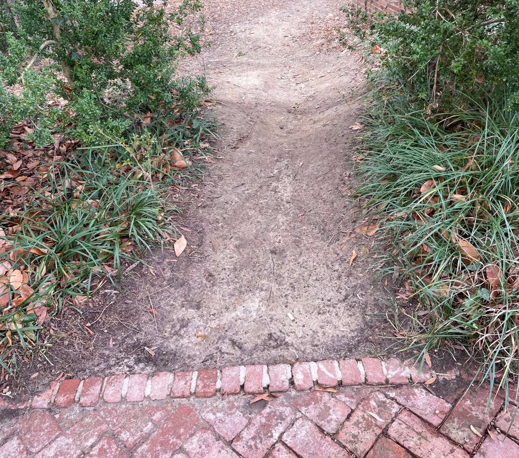I chose four separate locations where I have actively ignored paths, seen others ignore paths, or seen resulting desire paths to observe. There was a scale of wear and tear on the landscaping that these locations spread across. The least of the damage was a complete lack of a visible path, whereas the other end of the spectrum was a very apparent slash across the surrounding landscaping- all vegetation being stripped away, leaving only hard-packed dirt and footprints. Not only is this habit of cutting across brush harmful to the vegetation, Westekemper states that it has an impact on the animal life surrounding where the trails are forced into the earth. She speaks about deer near hiking trails and how their behaviors are adjusted when there are new paths formed (Westekemper). I know that we do not often see animal life on the brick paths, but are we affecting wildlife by cutting corners? Does this confuse squirrels? Scare away chipmunks? Harm insects? The gravity of this situation is definitely more that it seems on the surface.